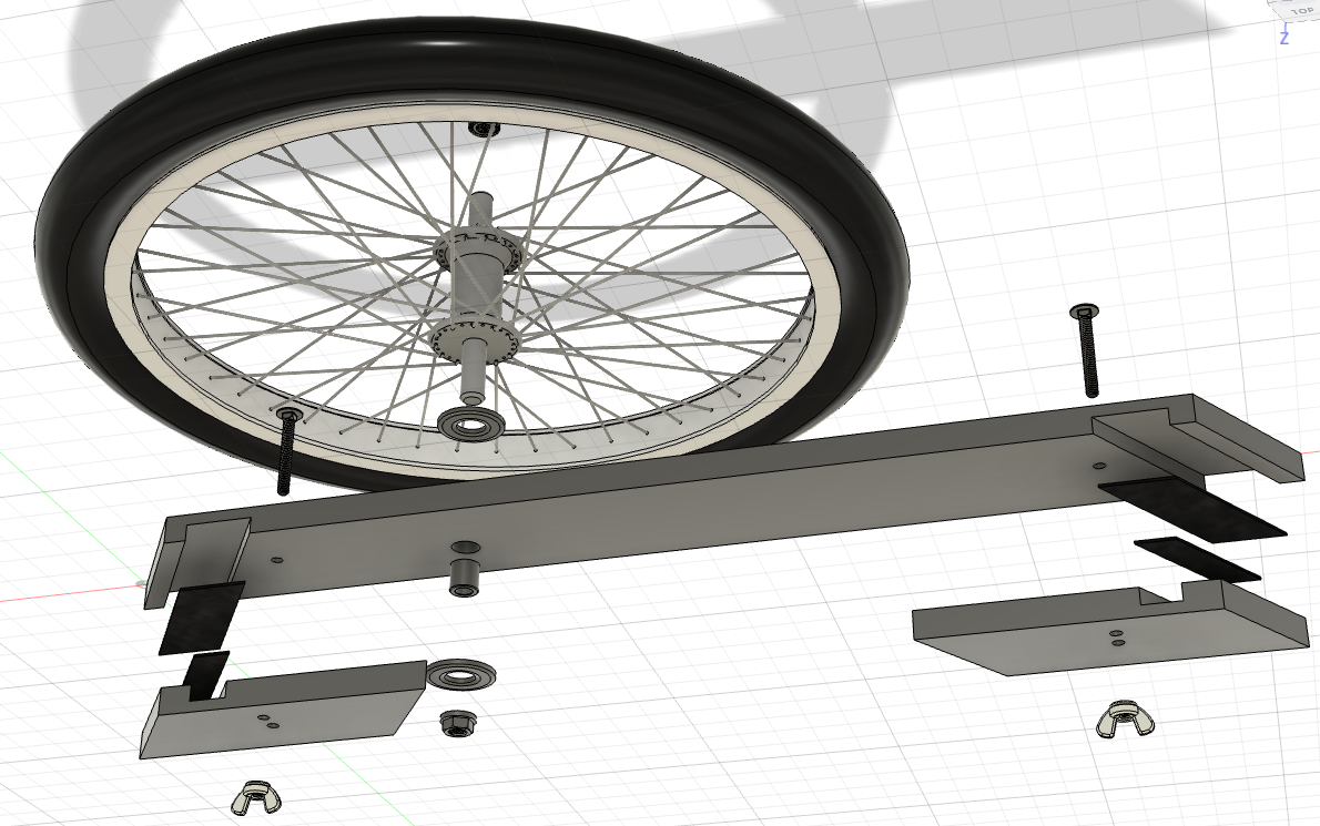 The azimuth drive wheel consists of a bike wheel on a crossbar, that’s clamped to the left side of the chair frame. The wheel runs along the ground track. ….read more