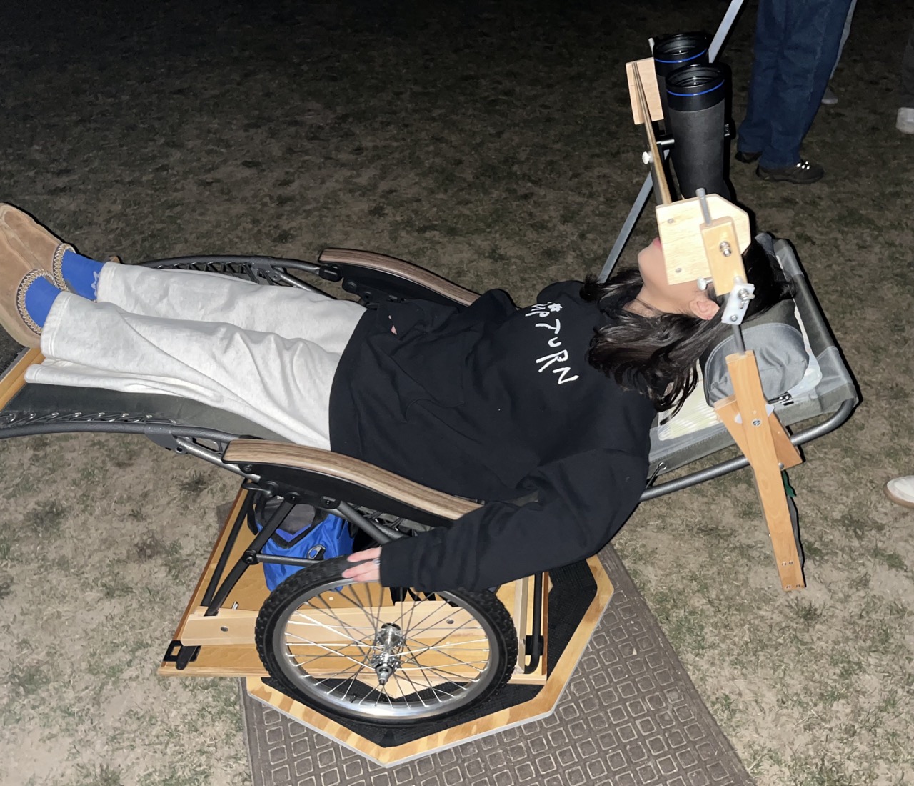 Assisting new bino-chair users, e.g., at a star party